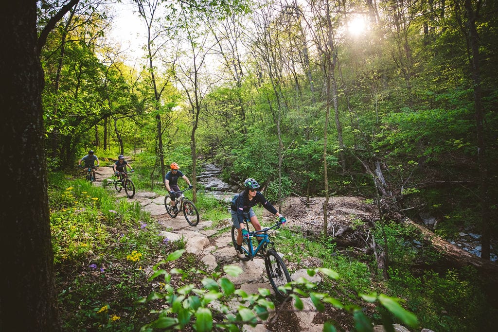Although you will run into multiple water and road crossings, there are bridges and tunnels built out of 10-foot diameter pipes that make for a seamless and safe ride. The NWA Trailblazers are also overseeing the construction of a nearly 400-foot bridge spanning Little Sugar Creek that will serve as a connector to the Back 40 trail system on the east side of Bella Vista, which opened in 2016. Once that’s complete, mountain bikers will be able to start and finish a century ride, that’s 100 miles, all within city limits and almost entirely on the soft-surface trail.