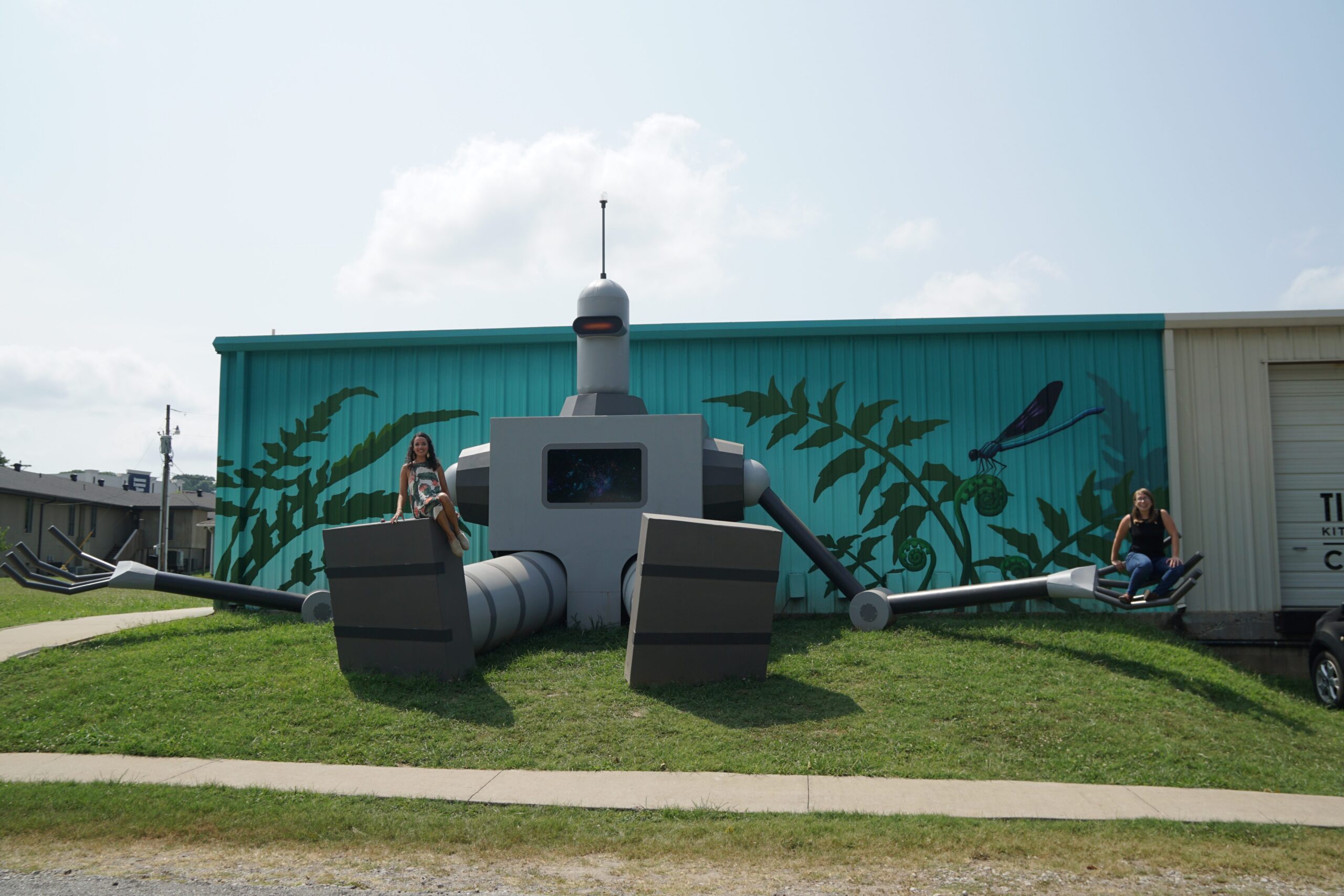 A few streets over from Lake Bella Vista sits a giant robot named Clank. Artist Jason Jones built Clank from steel and other metals he soldered together. Jones says he would often go to flea markets and thrift stores to purchase old scenic paintings. Jones would paint robots into the landscapes to add his touch to them. Mike Abb, Creative Director at Runway Group, encouraged Jones to bring one of these robots to life, which resulted in bringing Clank to Bella Vista.