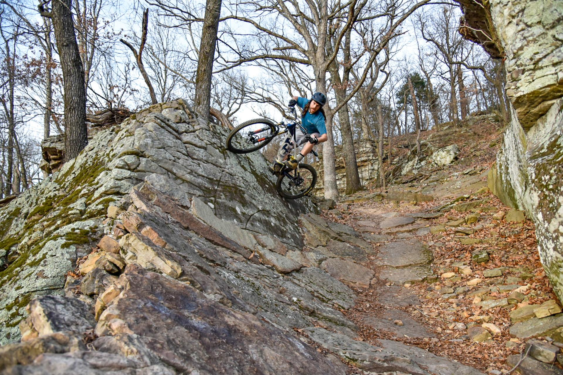 You can find everything here from the advanced technical terrain, rocky descents, and punchy climbs to a Strider skills course for the kiddos. Stage Coach, Coyote Cave, and the affectionately named Best Trail Ever are worth riding for the stonemasonry alone. The builders took what Northwest Arkansas’s geology had to offer and turned it into rock gardens, jumps, and bridges, so all the features are built with stone sourced from the property. Trails added to the south side of the park will let you session up and down the hill trying out multiple lines.