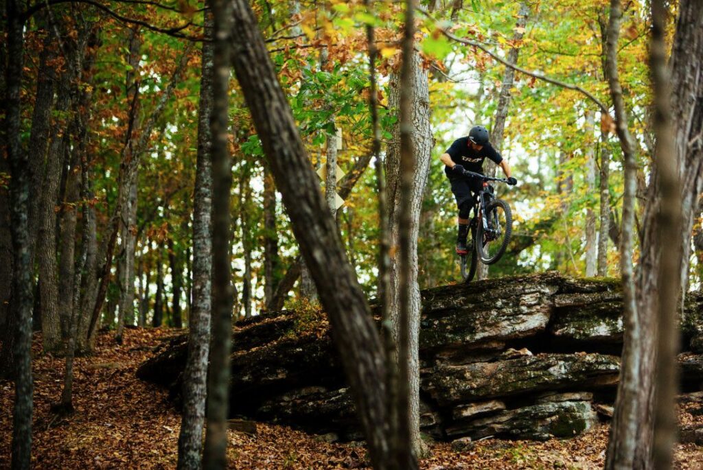 The steep and ledgy hillsides of Lake Leatherwood trails make the Eureka Springs park ripe for downhill-only trails. There are seven of them, each about a mile long. For a fee, which goes to maintaining the trails, a shuttle sprints riders and their bikes up the mountain to two stone platforms that serve as the launching pads for each descent. There are smooth, flowing trails for beginners, technical rocky downhills for intermediate riders, and massive jumps and drops for the experts, including the so-called “lily pad.” You’ll know it when you see it. Hint: it’s on Downhill One, and it’s big.