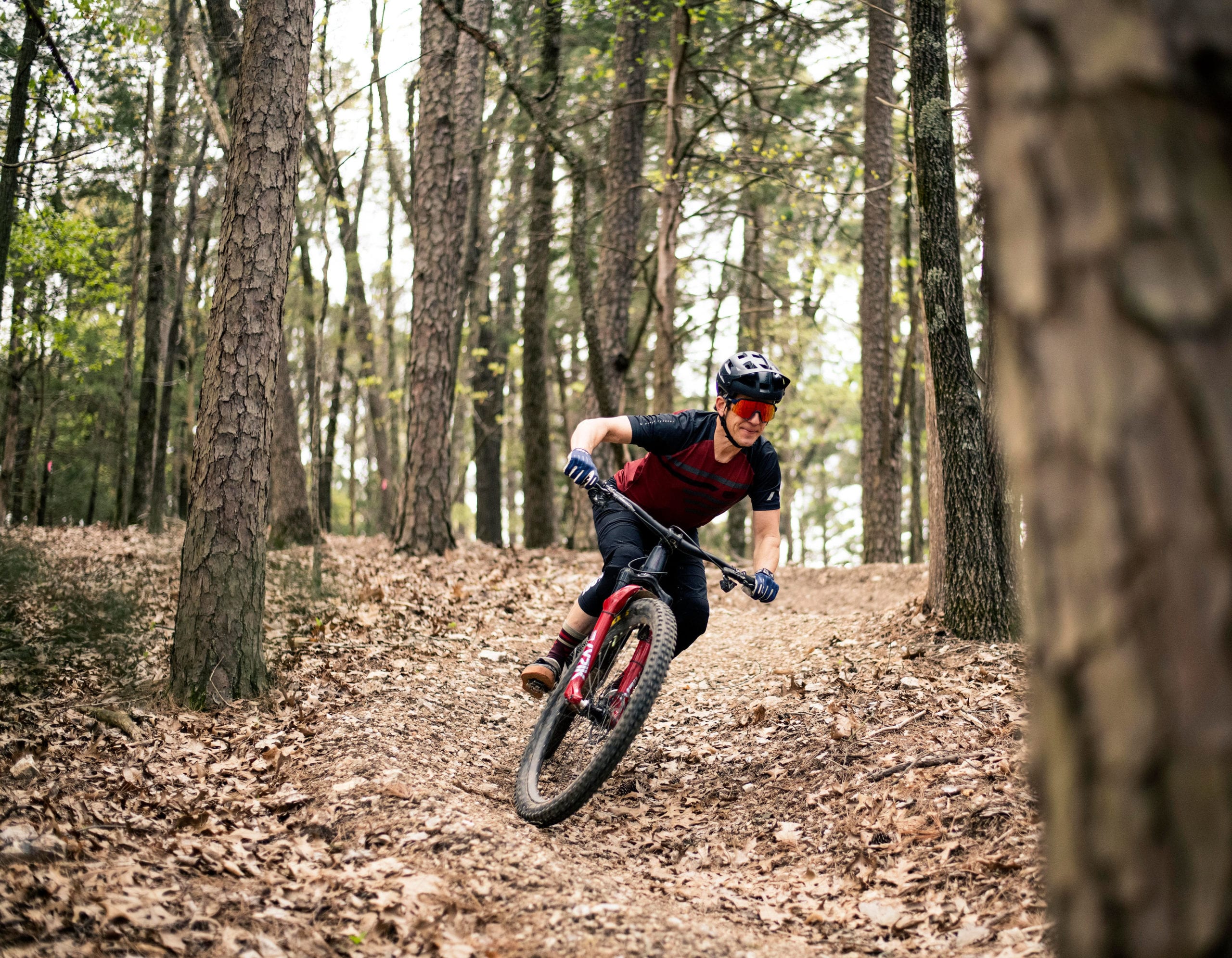 Phthalo Green is the beginner line with lots of rollers and swooping berms that eventually drop you into the skills area, which includes a variety of rock piles and wooden skinnies to keep things interesting. On the intermediate line called Prussian Blue, you’re in for tight switchbacks, catch berms, and chunky bits of rock. More experienced riders should also check out Midnight Black, which includes jumps and a wooden berm that curves around a massive boulder, making this another spot you’ll want to remember with a photo or video. The Joys of Riding, Beauty is Everywhere and Happy Little Trail Climb will take you back to the hub or connect you to the Passion Play, which makes it easy to link the two trail networks together into one epic ride.”