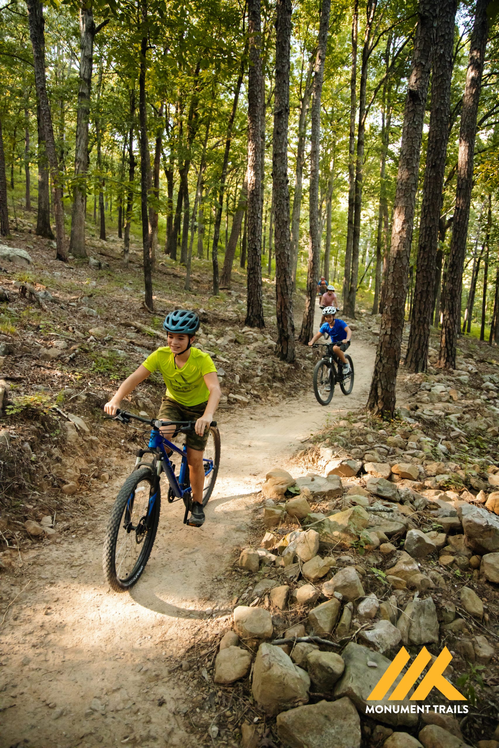 At Pinnacle Mountain State Park we have built our most extensive directional downhill trails to take advantage of the 2 eastern peaks of the Park, Middle Mountain, and Fulk Mountain, along with nearly 7.5-mile perimeter trails connecting everything. We have not built a trail on beloved Pinnacle mountain but left it solely for foot traffic enjoyment of the East and West Summit Trails. In the fall of 2020, art installations will be added at significant points around the Monument Trail System for a truly unique experience in our state’s most populous area.